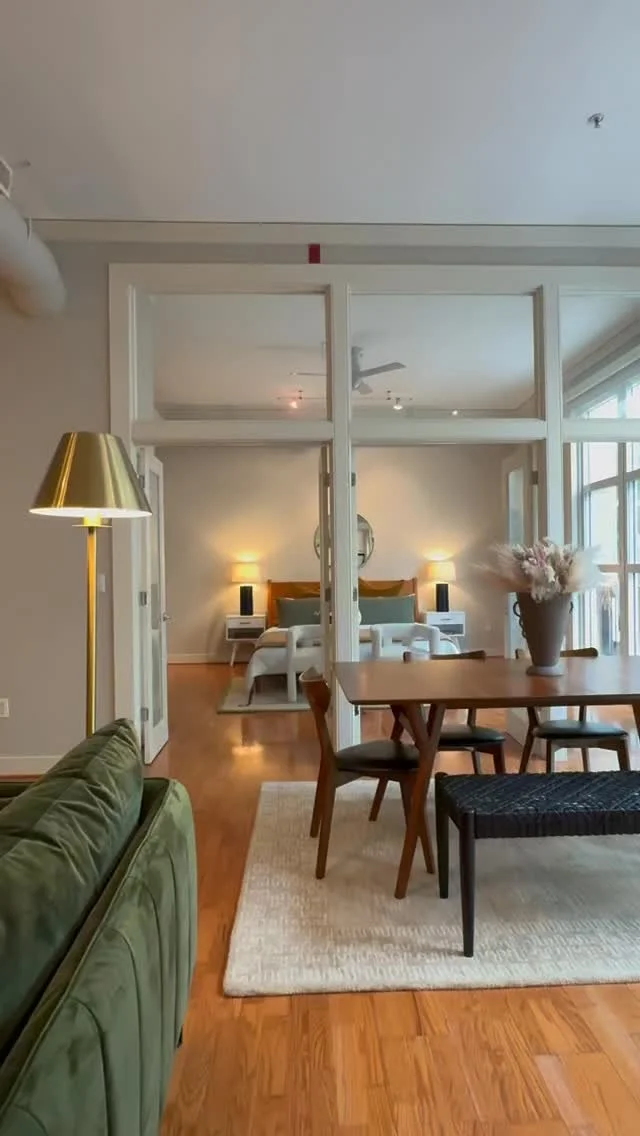 This lovely unit is in one of those bigger buildings that have tons of amenities and a great location but was built too recently to have much funk or soul. That's where I come in. I took this white box and gave it all the spice it needed to stand apart in the crowd.
